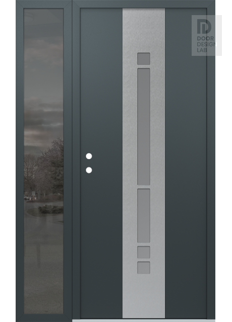 Modern Steel Front Door DIAMOND A3 50" X 80" ANTHRACITE/ANTHRACITE FROSTED GLASS PANEL STAINLESS STEEL LHI WITH SIDELITE MIRRORED GLASS