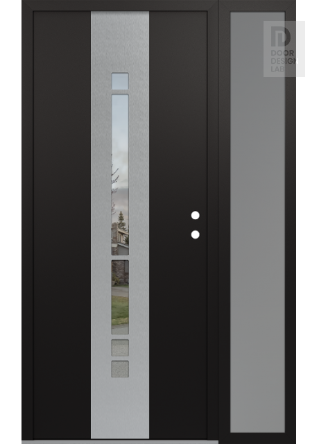 Modern Steel Front Door DIAMOND A3 50" X 80" BLACK/BLACK CLEAR GLASS PANEL STAINLESS STEEL RHI WITH SIDELITE FROSTED GLASS