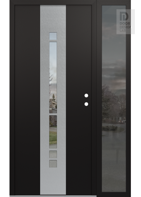 Modern Steel Front Door DIAMOND A3 50" X 80" BLACK/BLACK CLEAR GLASS PANEL STAINLESS STEEL RHI WITH SIDELITE MIRRORED GLASS