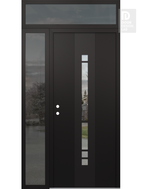 Modern Steel Front Door DIAMOND A3 50" X 96" BLACK/BLACK CLEAR GLASS PANEL BLACK LHI WITH SIDELITE AND TRANSOM MIRRORED GLASS
