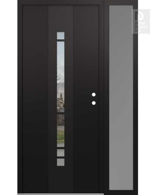 Modern Steel Front Door DIAMOND A3 52" X 80" BLACK/BLACK CLEAR GLASS PANEL BLACK RHI WITH SIDELITE FROSTED GLASS