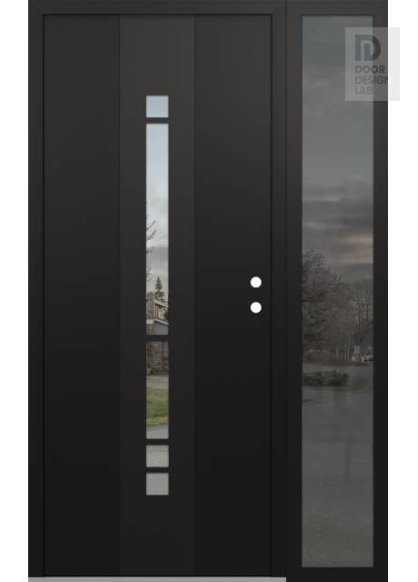 Modern Steel Front Door DIAMOND A3 52" X 80" BLACK/BLACK CLEAR GLASS PANEL BLACK RHI WITH SIDELITE MIRRORED GLASS