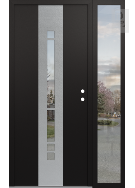 Modern Steel Front Door DIAMOND A3 52" X 80" BLACK/BLACK CLEAR GLASS PANEL STAINLESS STEEL RHI WITH SIDELITE CLEAR GLASS