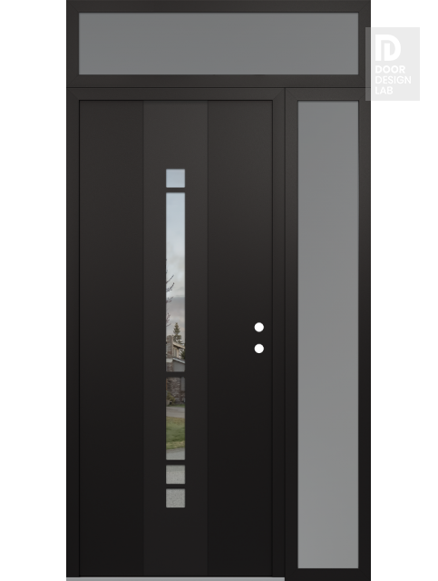 Modern Steel Front Door DIAMOND A3 52" X 96" BLACK/BLACK CLEAR GLASS PANEL BLACK RHI WITH SIDELITE AND TRANSOM FROSTED GLASS