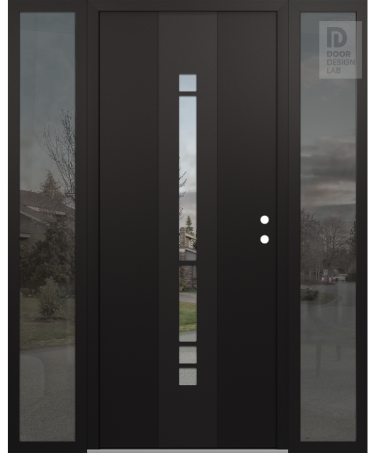 Modern Steel Front Door DIAMOND A3 60" X 80" BLACK/BLACK CLEAR GLASS PANEL BLACK RHI WITH 2 SIDELITES MIRRORED GLASS