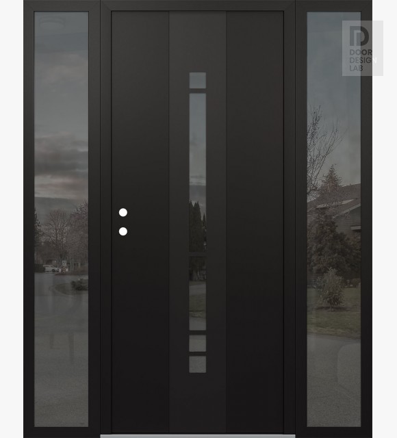 Modern Steel Front Door DIAMOND A3 60" X 80" BLACK/BLACK MIRRORED GLASS PANEL BLACK LHI WITH 2 SIDELITES MIRRORED GLASS