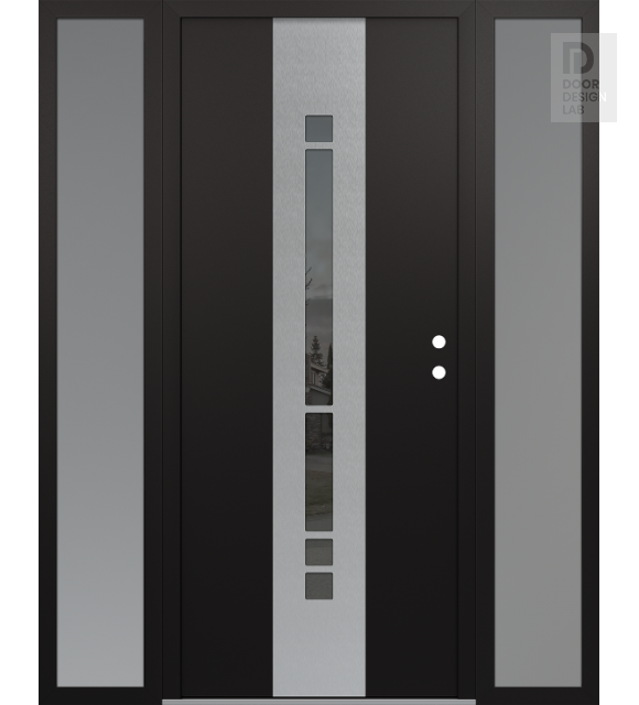 Modern Steel Front Door DIAMOND A3 60" X 80" BLACK/BLACK MIRRORED GLASS PANEL STAINLESS STEEL RHI WITH 2 SIDELITES FROSTED GLASS