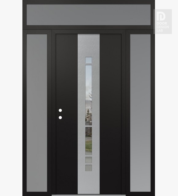Modern Steel Front Door DIAMOND A3 60" X 96" BLACK/BLACK CLEAR GLASS PANEL STAINLESS STEEL LHI WITH 2 SIDELITES AND TRANSOM FROSTED GLASS