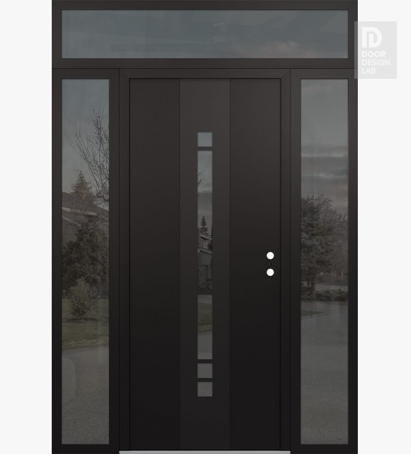 Modern Steel Front Door DIAMOND A3 60" X 96" BLACK/BLACK MIRRORED GLASS PANEL BLACK RHI WITH 2 SIDELITES AND TRANSOM MIRRORED GLASS