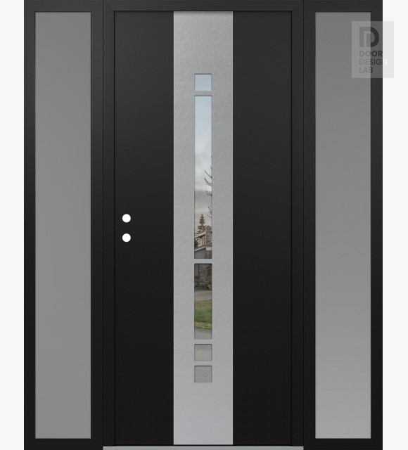 Modern Steel Front Door DIAMOND A3 64" X 80" BLACK/BLACK CLEAR GLASS PANEL STAINLESS STEEL LHI WITH 2 SIDELITES FROSTED GLASS
