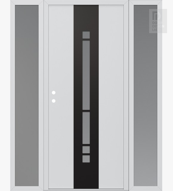 Modern Steel Front Door DIAMOND A3 64" X 80" BLACK/WHITE FROSTED GLASS PANEL BLACK LHI WITH 2 SIDELITES FROSTED GLASS
