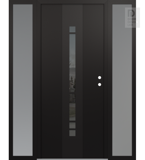 Modern Steel Front Door DIAMOND A3 68" X 80" BLACK/BLACK MIRRORED GLASS PANEL BLACK RHI WITH 2 SIDELITES FROSTED GLASS