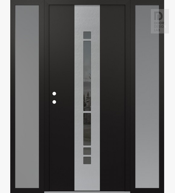 Modern Steel Front Door DIAMOND A3 68" X 80" BLACK/BLACK MIRRORED GLASS PANEL STAINLESS STEEL LHI WITH 2 SIDELITES FROSTED GLASS