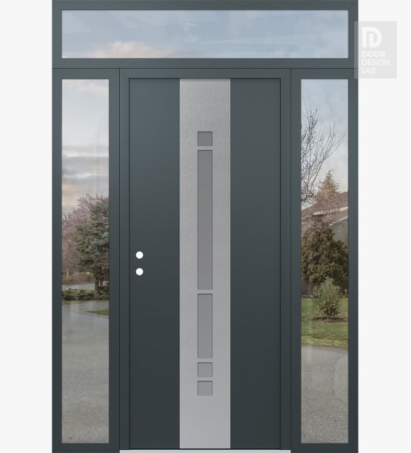 Modern Steel Front Door DIAMOND A3 68" X 96" ANTHRACITE/ANTHRACITE FROSTED GLASS PANEL STAINLESS STEEL LHI WITH 2 SIDELITES AND TRANSOM CLEAR GLASS