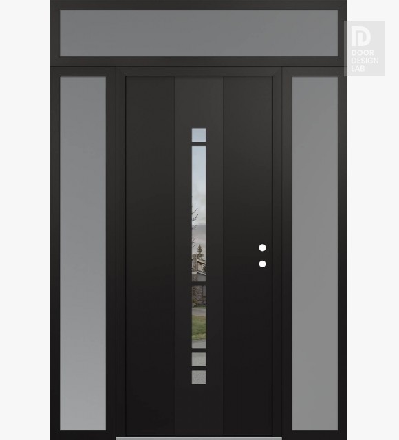 Modern Steel Front Door DIAMOND A3 68" X 96" BLACK/BLACK CLEAR GLASS PANEL BLACK RHI WITH 2 SIDELITES AND TRANSOM FROSTED GLASS