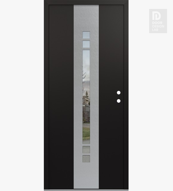 Modern Steel Front Door DIAMOND A4 36" X 80" BLACK/BLACK CLEAR GLASS PANEL STAINLESS STEEL RHI