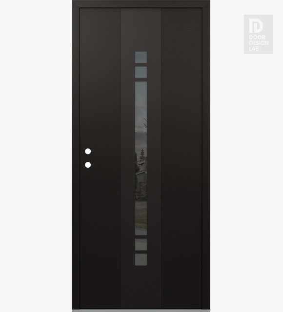 Modern Steel Front Door DIAMOND A4 36" X 80" BLACK/BLACK MIRRORED GLASS PANEL BLACK LHI