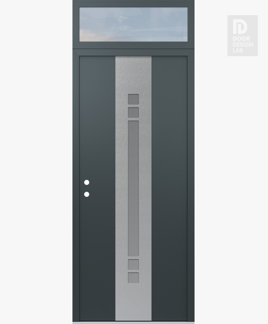 Modern Steel Front Door DIAMOND A4 36" X 96" ANTHRACITE/ANTHRACITE FROSTED GLASS PANEL STAINLESS STEEL LHI WITH TRANSOM CLEAR GLASS