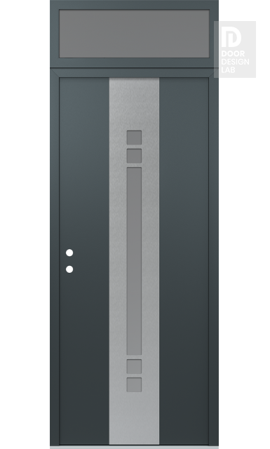 Modern Steel Front Door DIAMOND A4 36" X 96" ANTHRACITE/ANTHRACITE FROSTED GLASS PANEL STAINLESS STEEL LHI WITH TRANSOM FROSTED GLASS