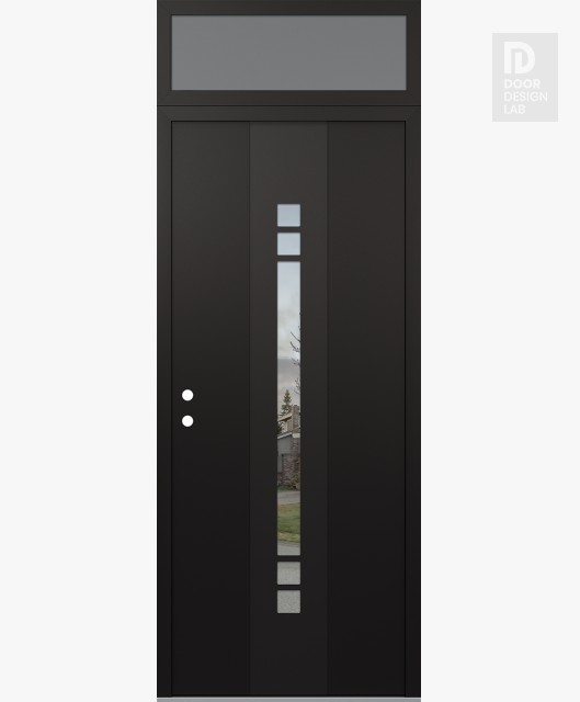Modern Steel Front Door DIAMOND A4 36" X 96" BLACK/BLACK CLEAR GLASS PANEL BLACK LHI WITH TRANSOM FROSTED GLASS