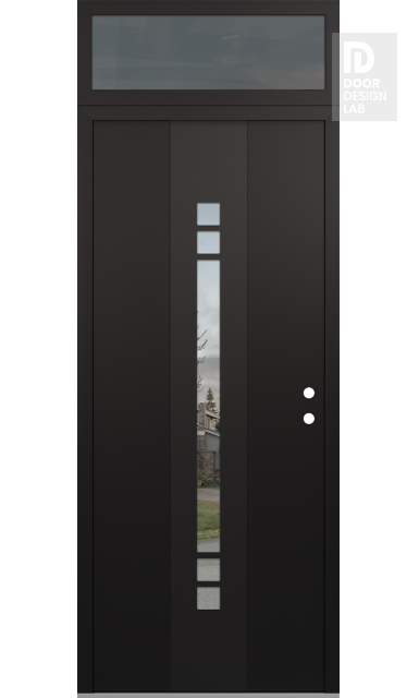 Modern Steel Front Door DIAMOND A4 36" X 96" BLACK/BLACK CLEAR GLASS PANEL BLACK RHI WITH TRANSOM MIRRORED GLASS