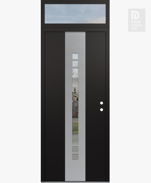 Modern Steel Front Door DIAMOND A4 36" X 96" BLACK/BLACK CLEAR GLASS PANEL STAINLESS STEEL RHI WITH TRANSOM CLEAR GLASS