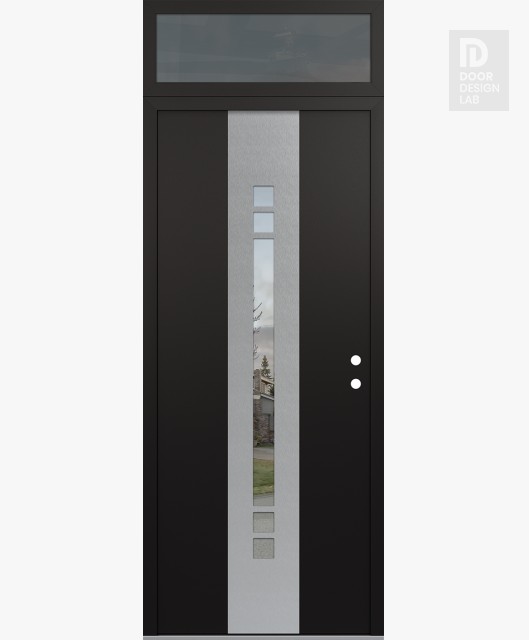 Modern Steel Front Door DIAMOND A4 36" X 96" BLACK/BLACK CLEAR GLASS PANEL STAINLESS STEEL RHI WITH TRANSOM MIRRORED GLASS