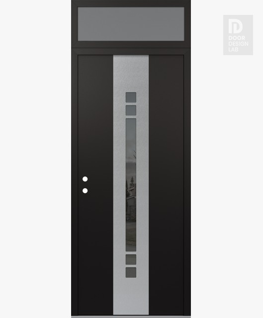 Modern Steel Front Door DIAMOND A4 36" X 96" BLACK/BLACK MIRRORED GLASS PANEL STAINLESS STEEL LHI WITH TRANSOM FROSTED GLASS