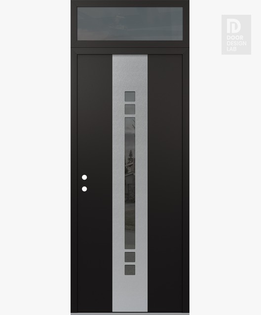 Modern Steel Front Door DIAMOND A4 36" X 96" BLACK/BLACK MIRRORED GLASS PANEL STAINLESS STEEL LHI WITH TRANSOM MIRRORED GLASS