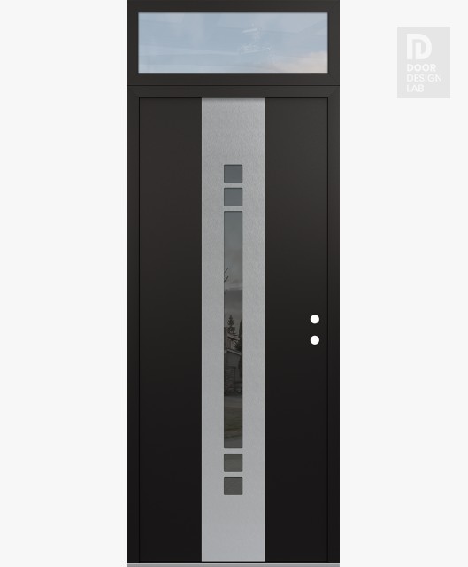 Modern Steel Front Door DIAMOND A4 36" X 96" BLACK/BLACK MIRRORED GLASS PANEL STAINLESS STEEL RHI WITH TRANSOM CLEAR GLASS