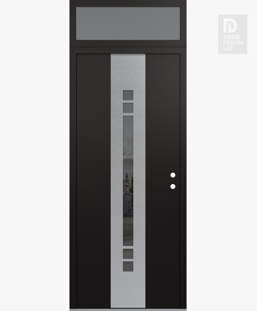 Modern Steel Front Door DIAMOND A4 36" X 96" BLACK/BLACK MIRRORED GLASS PANEL STAINLESS STEEL RHI WITH TRANSOM FROSTED GLASS