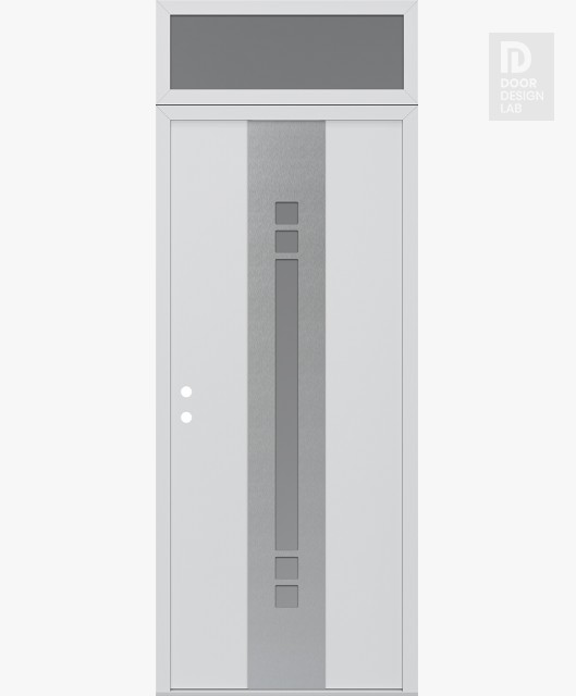 Modern Steel Front Door DIAMOND A4 36" X 96" BLACK/WHITE FROSTED GLASS PANEL STAINLESS STEEL LHI WITH TRANSOM FROSTED GLASS