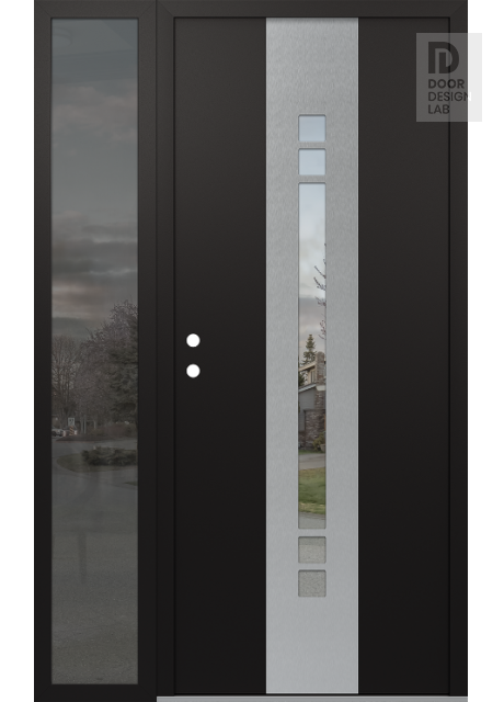 Modern Steel Front Door DIAMOND A4 48" X 80" BLACK/BLACK CLEAR GLASS PANEL STAINLESS STEEL LHI WITH SIDELITE MIRRORED GLASS