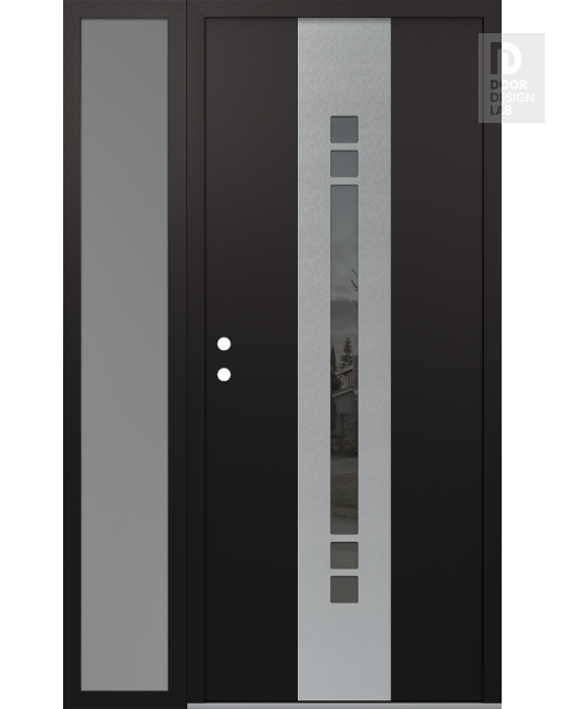 Modern Steel Front Door DIAMOND A4 48" X 80" BLACK/BLACK MIRRORED GLASS PANEL STAINLESS STEEL LHI WITH SIDELITE FROSTED GLASS
