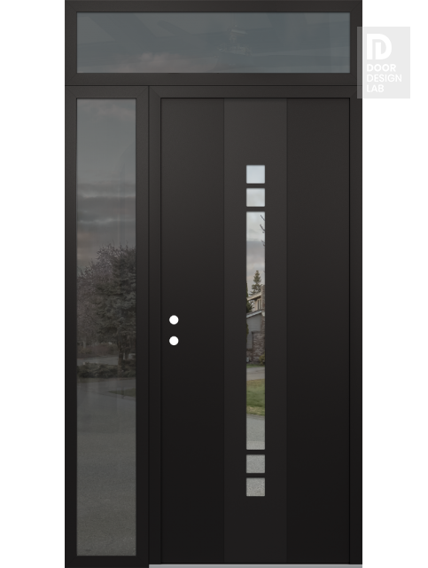 Modern Steel Front Door DIAMOND A4 48" X 96" BLACK/BLACK CLEAR GLASS PANEL BLACK LHI WITH SIDELITE AND TRANSOM MIRRORED GLASS
