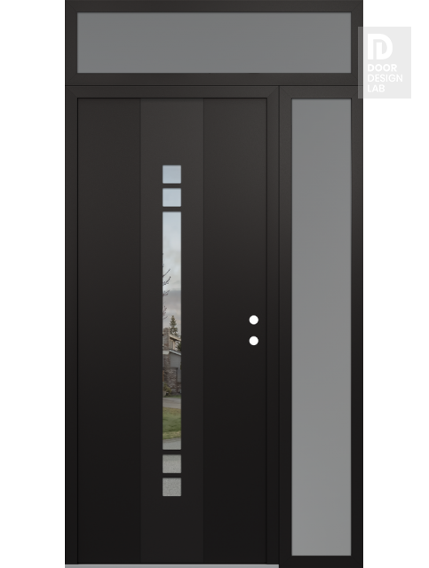 Modern Steel Front Door DIAMOND A4 48" X 96" BLACK/BLACK CLEAR GLASS PANEL BLACK RHI WITH SIDELITE AND TRANSOM FROSTED GLASS
