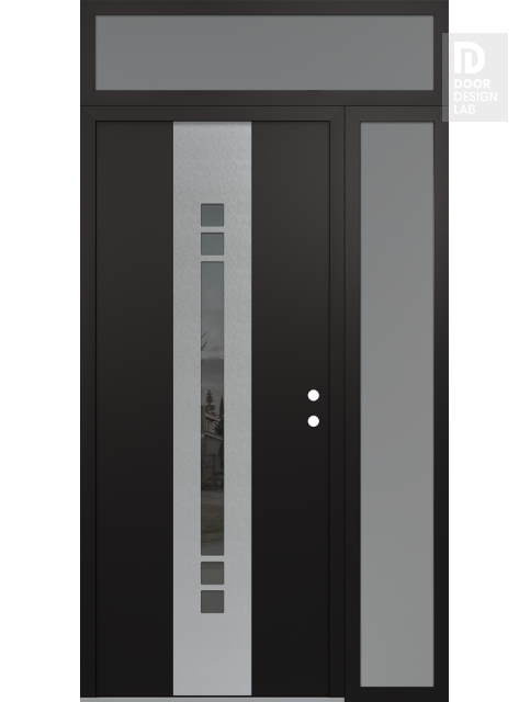 Modern Steel Front Door DIAMOND A4 48" X 96" BLACK/BLACK MIRRORED GLASS PANEL STAINLESS STEEL RHI WITH SIDELITE AND TRANSOM FROSTED GLASS