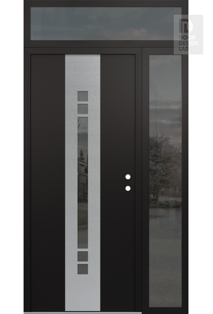 Modern Steel Front Door DIAMOND A4 48" X 96" BLACK/BLACK MIRRORED GLASS PANEL STAINLESS STEEL RHI WITH SIDELITE AND TRANSOM MIRRORED GLASS