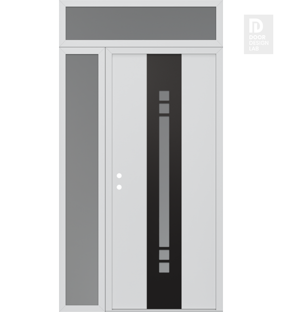 Modern Steel Front Door DIAMOND A4 48" X 96" BLACK/WHITE FROSTED GLASS PANEL BLACK LHI WITH SIDELITE AND TRANSOM FROSTED GLASS