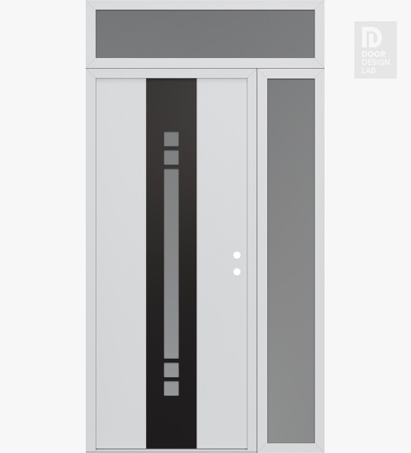Modern Steel Front Door DIAMOND A4 48" X 96" BLACK/WHITE FROSTED GLASS PANEL BLACK RHI WITH SIDELITE AND TRANSOM FROSTED GLASS