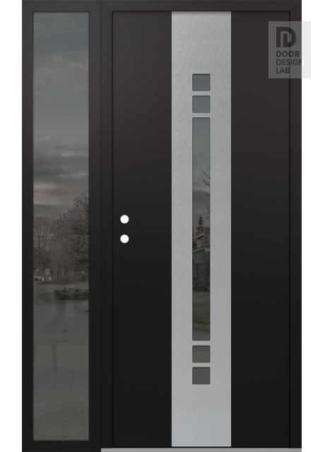 Modern Steel Front Door DIAMOND A4 50" X 80" BLACK/BLACK MIRRORED GLASS PANEL STAINLESS STEEL LHI WITH SIDELITE MIRRORED GLASS