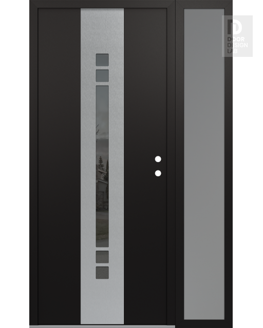 Modern Steel Front Door DIAMOND A4 50" X 80" BLACK/BLACK MIRRORED GLASS PANEL STAINLESS STEEL RHI WITH SIDELITE FROSTED GLASS