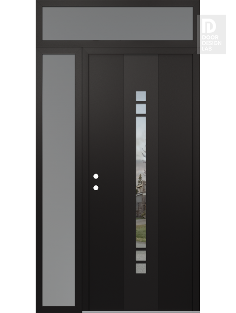 Modern Steel Front Door DIAMOND A4 50" X 96" BLACK/BLACK CLEAR GLASS PANEL BLACK LHI WITH SIDELITE AND TRANSOM FROSTED GLASS