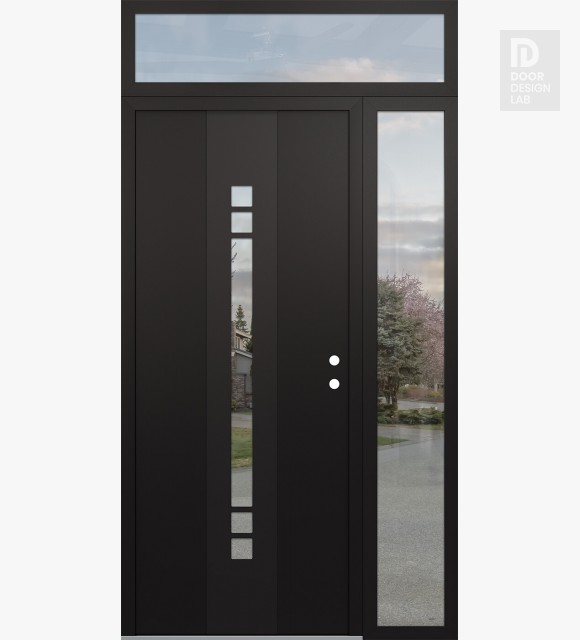 Modern Steel Front Door DIAMOND A4 50" X 96" BLACK/BLACK CLEAR GLASS PANEL BLACK RHI WITH SIDELITE AND TRANSOM CLEAR GLASS