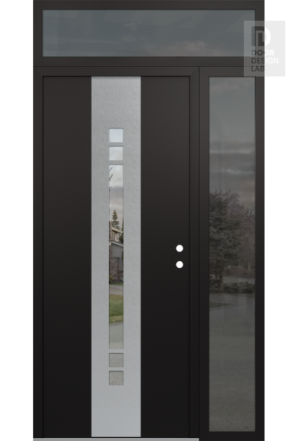 Modern Steel Front Door DIAMOND A4 50" X 96" BLACK/BLACK CLEAR GLASS PANEL STAINLESS STEEL RHI WITH SIDELITE AND TRANSOM MIRRORED GLASS