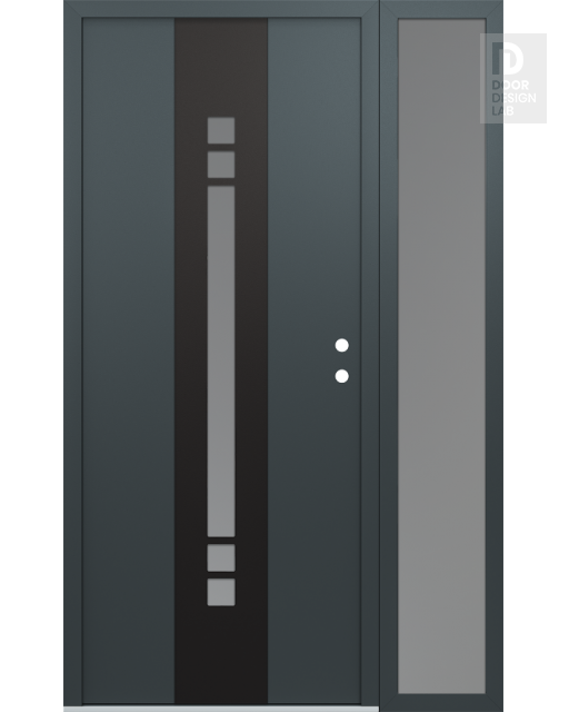 Modern Steel Front Door DIAMOND A4 52" X 80" ANTHRACITE/ANTHRACITE FROSTED GLASS PANEL BLACK RHI WITH SIDELITE FROSTED GLASS