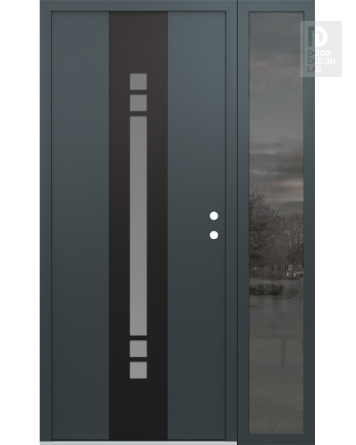 Modern Steel Front Door DIAMOND A4 52" X 80" ANTHRACITE/ANTHRACITE FROSTED GLASS PANEL BLACK RHI WITH SIDELITE MIRRORED GLASS