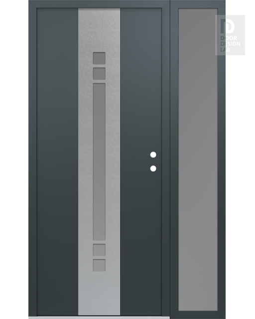 Modern Steel Front Door DIAMOND A4 52" X 80" ANTHRACITE/ANTHRACITE FROSTED GLASS PANEL STAINLESS STEEL RHI WITH SIDELITE FROSTED GLASS