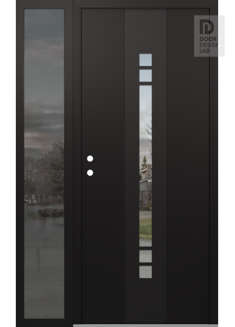 Modern Steel Front Door DIAMOND A4 52" X 80" BLACK/BLACK CLEAR GLASS PANEL BLACK LHI WITH SIDELITE MIRRORED GLASS