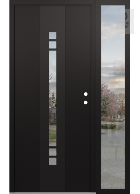 Modern Steel Front Door DIAMOND A4 52" X 80" BLACK/BLACK CLEAR GLASS PANEL BLACK RHI WITH SIDELITE CLEAR GLASS